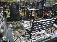 Состояние могилы после небольшого цикла работ. Покрашена лавка и ограда, обновлены розочки на ограде, помыты памятники и гранитный цоколь, убраны цветники и сорняки, почищена мраморная крошка. На могилу возложили свежие цветы.